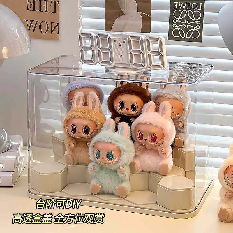 Labubu ディスプレイボックス Labubu 座りパーティー ビニールフェイス ブラインドボックス 収納ボックス ペンダント人形 透明フィギュア