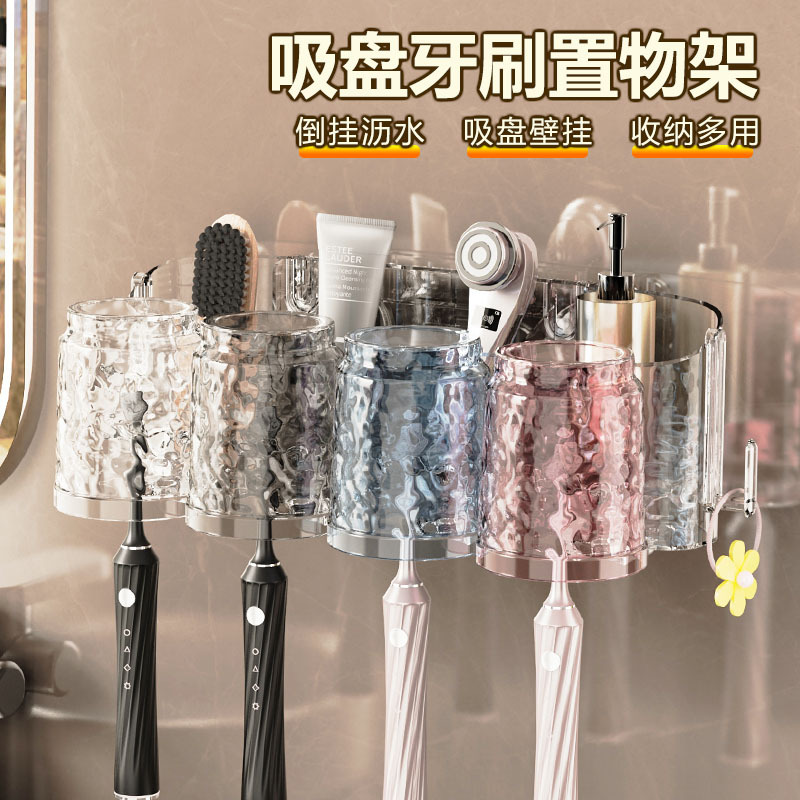 歯ブラシホルダー壁掛け式穴なし家庭電動歯磨き歯磨き粉うがいコップトイレ収納セット