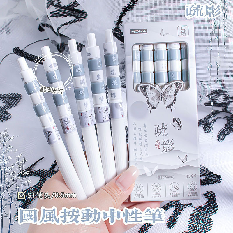 MOKAの新型千古名編は中性筆の学生のサインペンの国風の美学の黒い筆の創意の文房具の卸売りを押します。