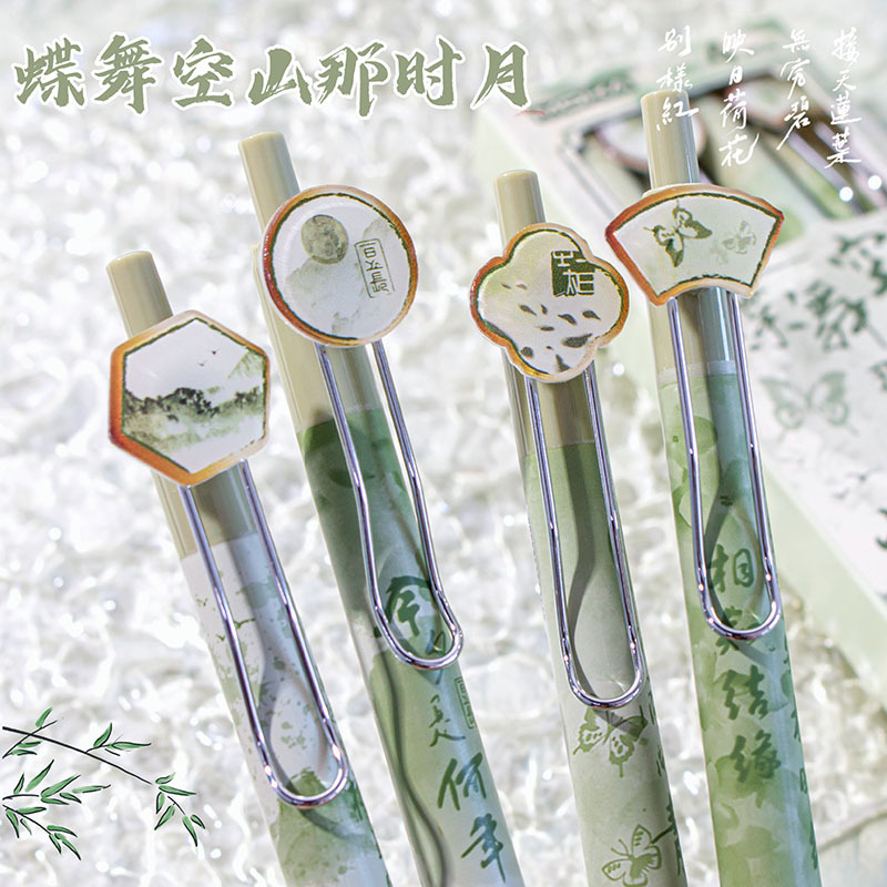 MOKA魔カード新商品中国風シリーズバタフライ空山押しSTペン先学生試験押し中性黒ペン