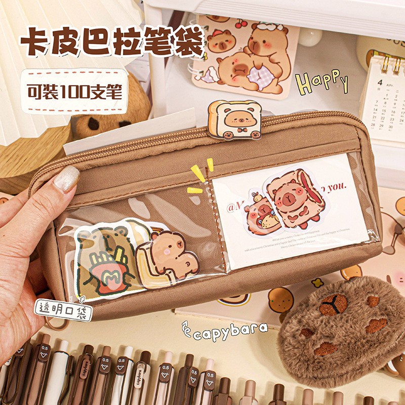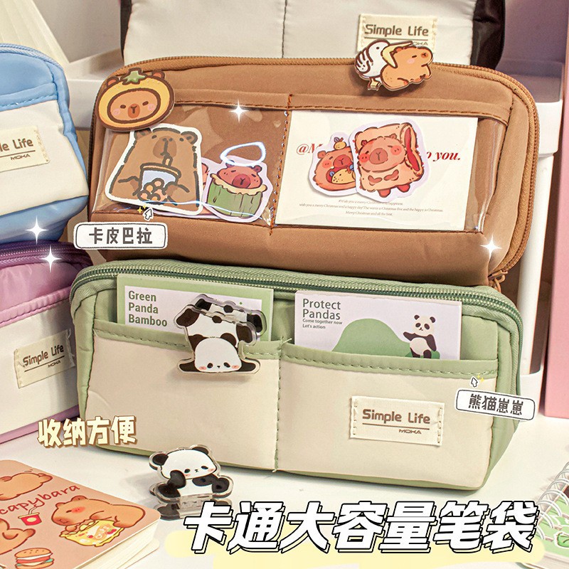MOKA起爆カピバラ痛みバッグペンポーチ高颜値大容量可爱い透明女子学生収纳文房具ケース