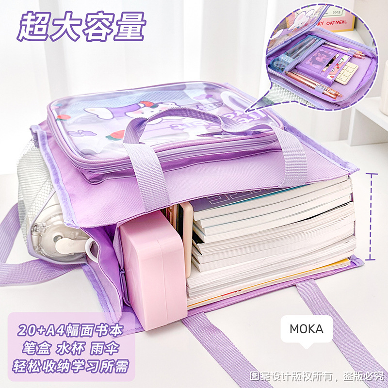 漫画高颜値手提げ袋かわいい大容量二重高品質オックスフォード布ファイルバッグジッパー透明塾バッグ