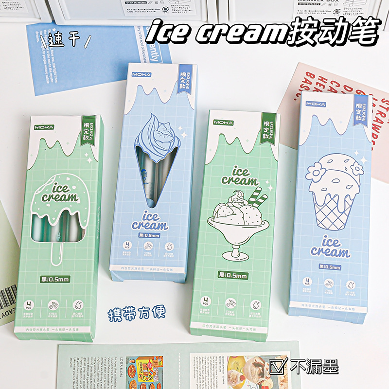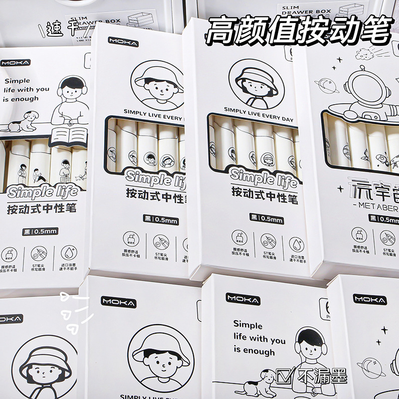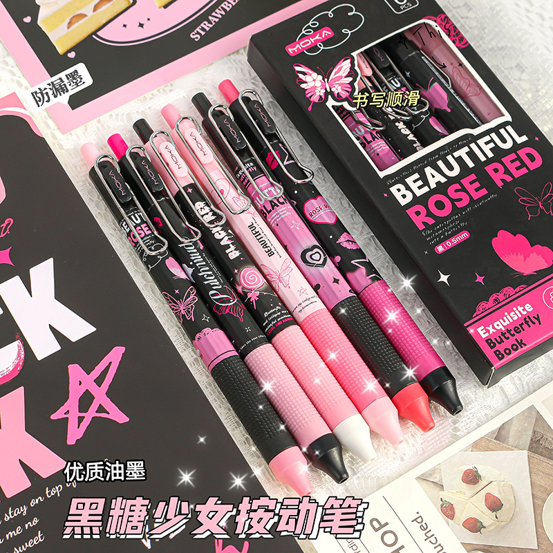 Moka黒糖少女心押しペン速乾中性ペン高颜値サインペンスプリング低重心ブラシ問題ペン