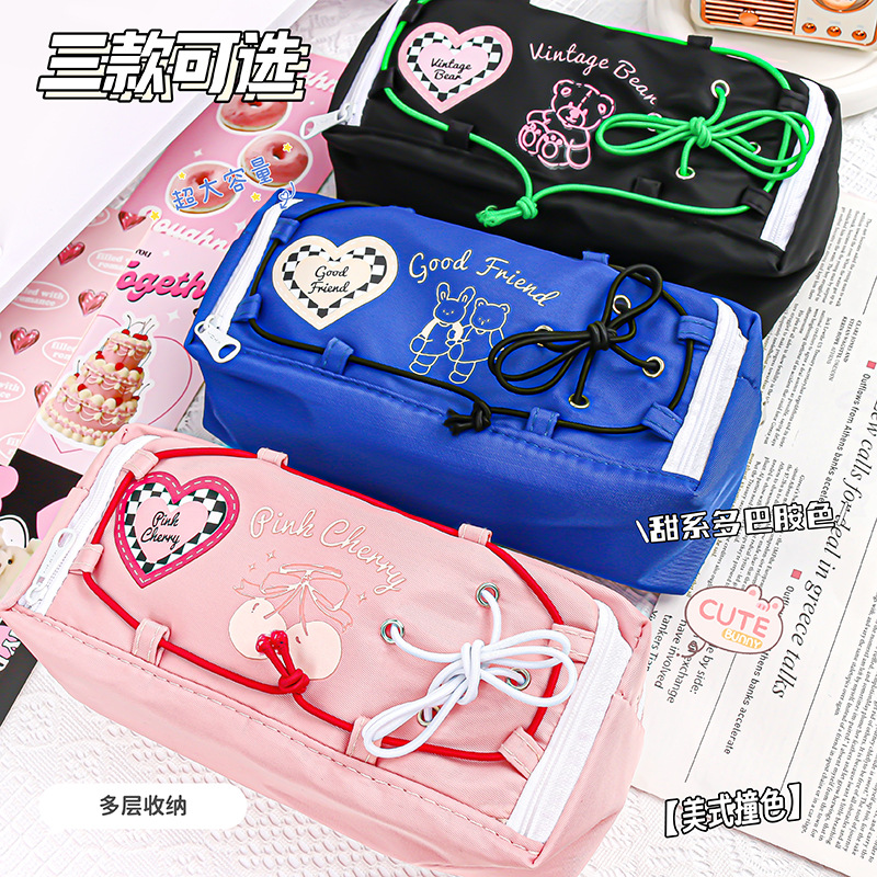ネット赤多層筆袋学生女子シンプル大容量枕筆袋文房具箱ins潮日系かわいい少女