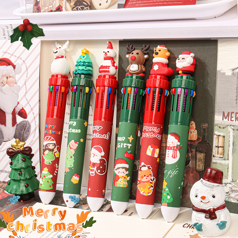 Mokaクリスマス漫画ペン押し式ボールペン0.5mm手帳用学生かわいいクリスマス風多色ペン