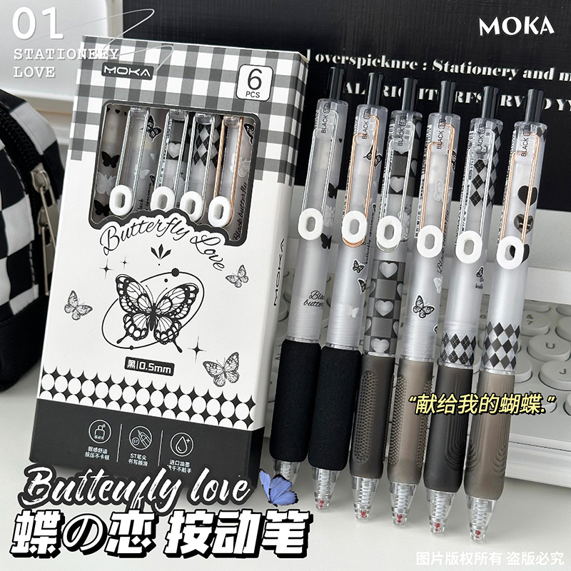 Moka箱入りst蝶恋中性押しペン高颜値学生速乾ブラシ問題ペン試験用ペン0.5mm黒