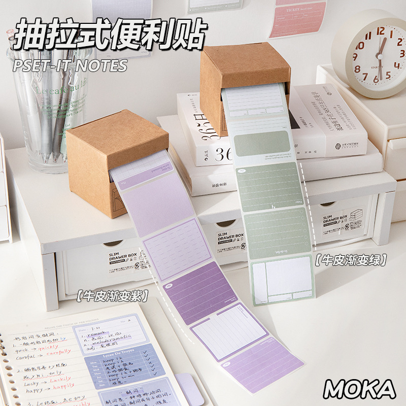 Moka引き出し式付箋小清新文芸風便箋pvc箱入りクラフト紙箱入り伝言メモ帳貼り