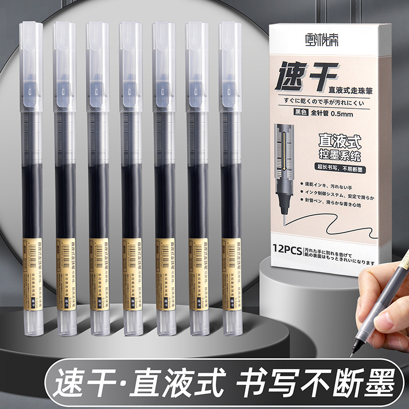 パンダペンは中性ペンを押して、高颜値速乾0.5mm黒減圧ペンはブラシを握って、学生用黒ペンを使います。