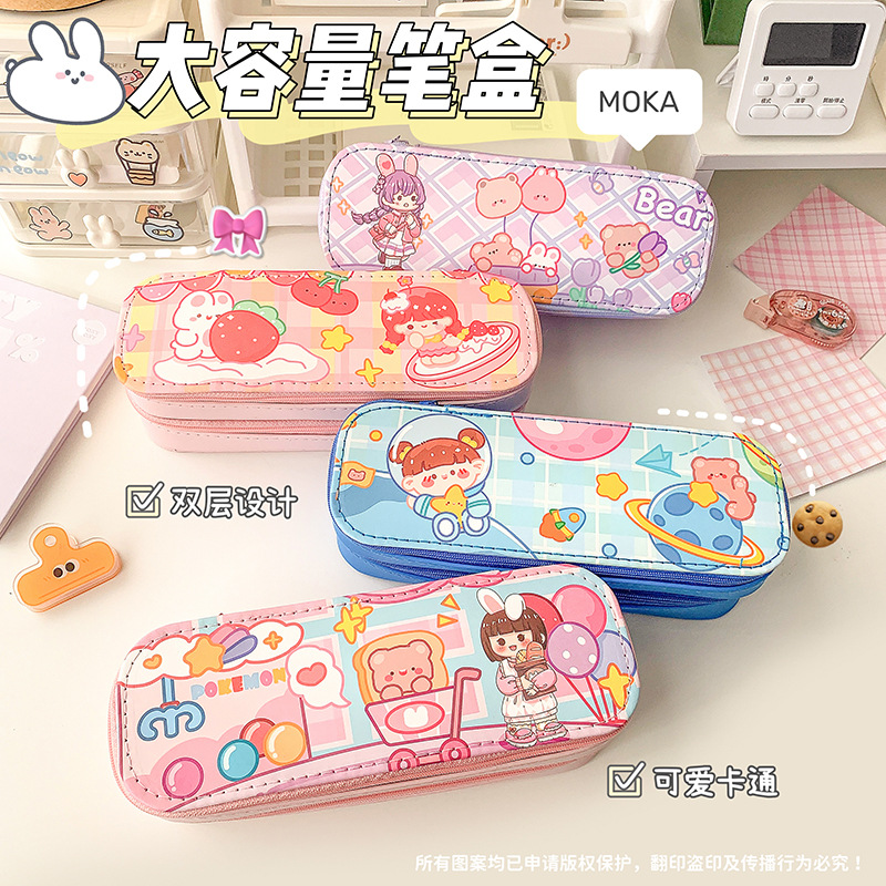 Mokaペンケース女の子小学生文房具ケース女の子高颜値二重大容量2023年新品ペンケース
