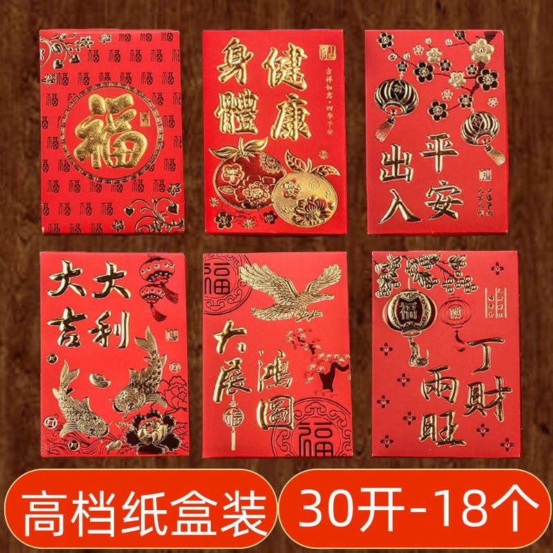 春節用紅包30枚入り、金箔押し高級クラシック新年紅包、新年用箱入り紅包卸売