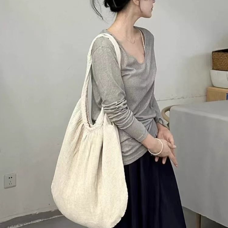 小衆デザインしわ筋理感シングルショルダーバッグ大容量カジュアル百合韓系シンプルトート貝殻ハンドバッグ