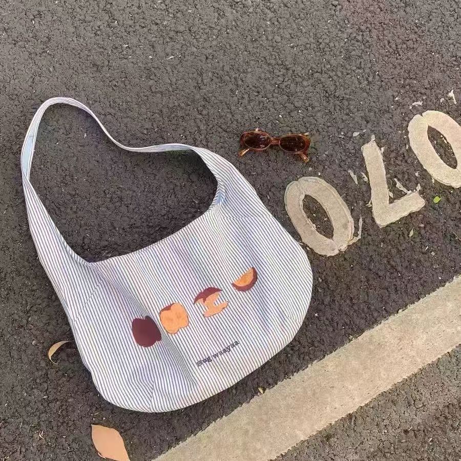 2025新型小衆日系イラスト面白いアップルシングル肩斜め掛けキャンバスバッグ通勤ショッピング女子プレゼント
