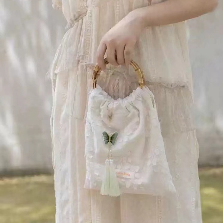 2024新中国式竹葉バケツバッグ女性文芸国風ビーズ引きひもシングルショルダーバッグファッション