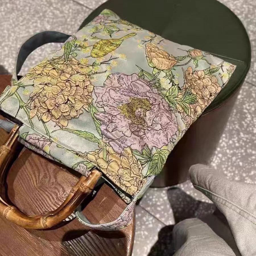 魚家stilrly高級ジャカードグリーン花卉二重竹節バッグシングルショルダーバッグ