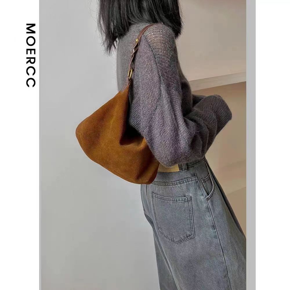 女性のカバン2023新作春のレトロなスエードのショルダーバッグ