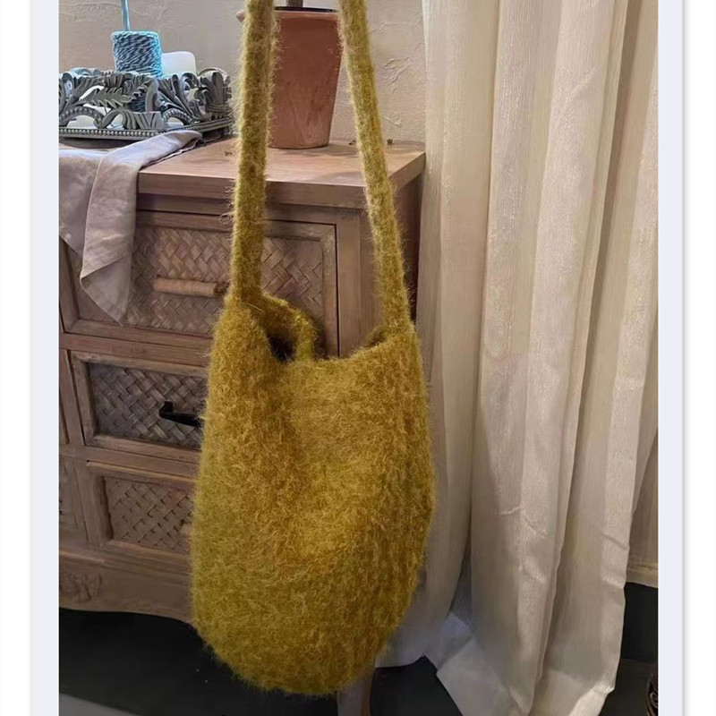 秋冬2023日韓柔らかいタオル生地バケツバッグネット赤ドーパミン系手提げシングル肩脇下女性バッグバッグ