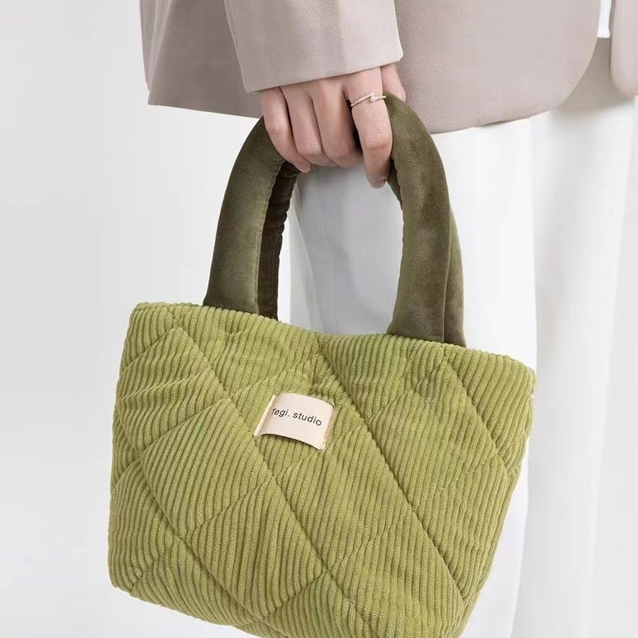 韓国版コーデュロイハンドバッグtegiシングルショルダーバッグ2023新型衝突色小方包秋冬衝突色バケツバッグ