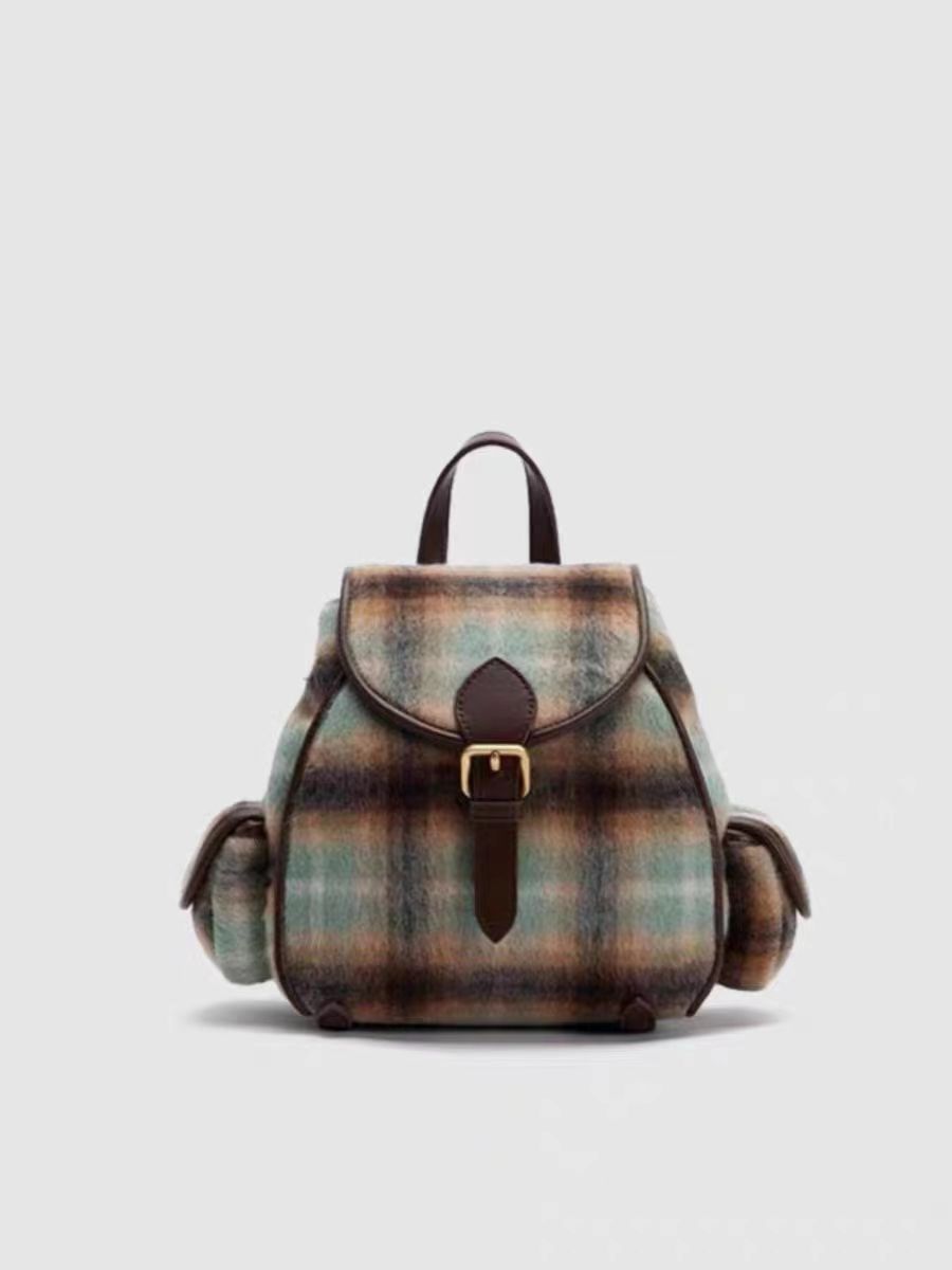 ランドセルバッグ女子2023秋冬新作ファッショングラデーション衝突色格子縞大学生ランドセルベルベットレトロリュックサック