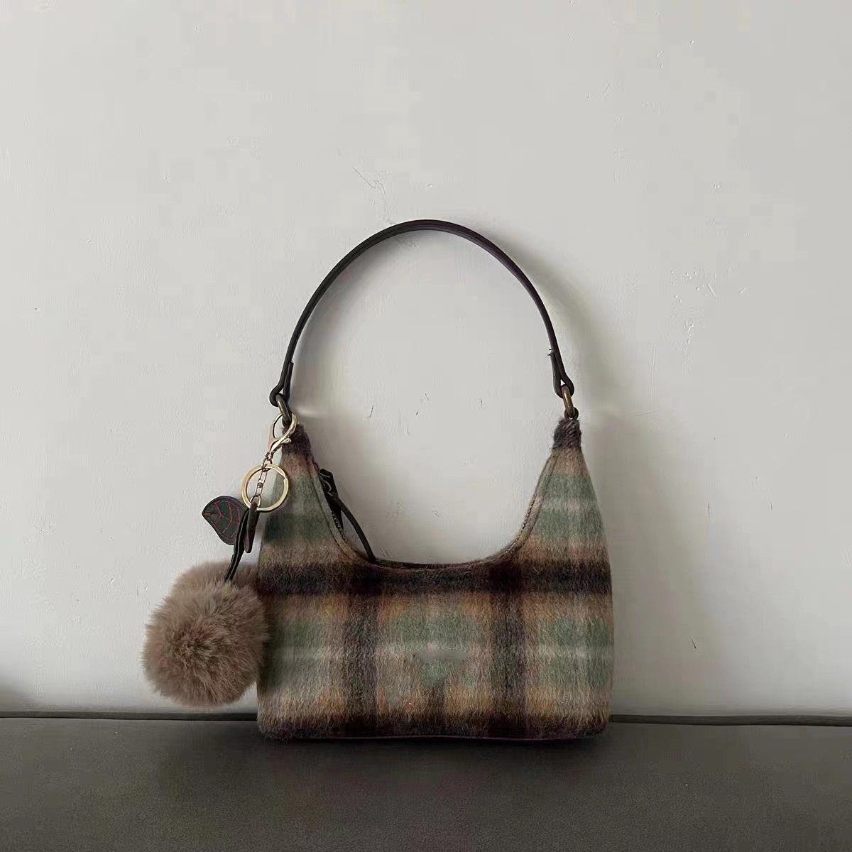 卸売りウール格子復古小衆腋の下包女2023新型秋冬さくらんぼ高級感手提げショルダーバッグ