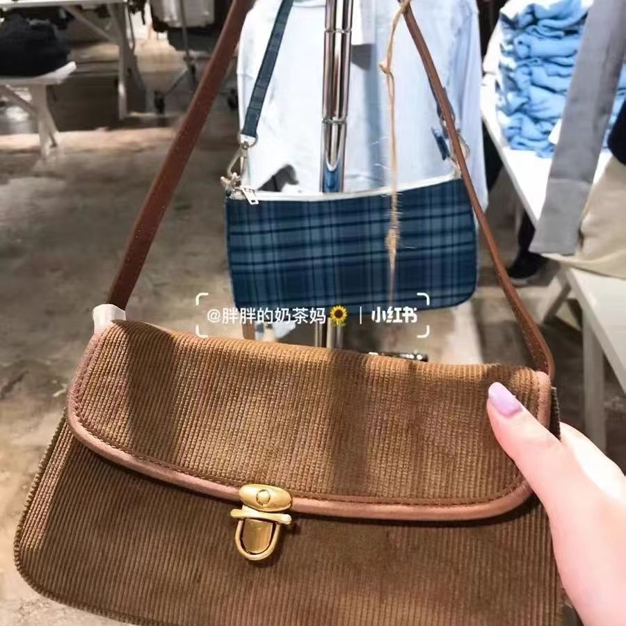 レトロなコーデュロイのショルダーバッグは女性2020の新しいファッションの棒を包んで脇の下で秋冬の包みを包みます。