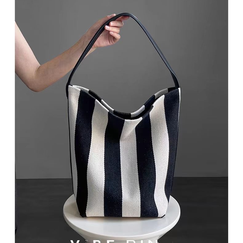 卸売りストライプキャンバスバッグバケツバッグ女性大容量バッグ女性新モデル2023シングルバッグ女性バッグ