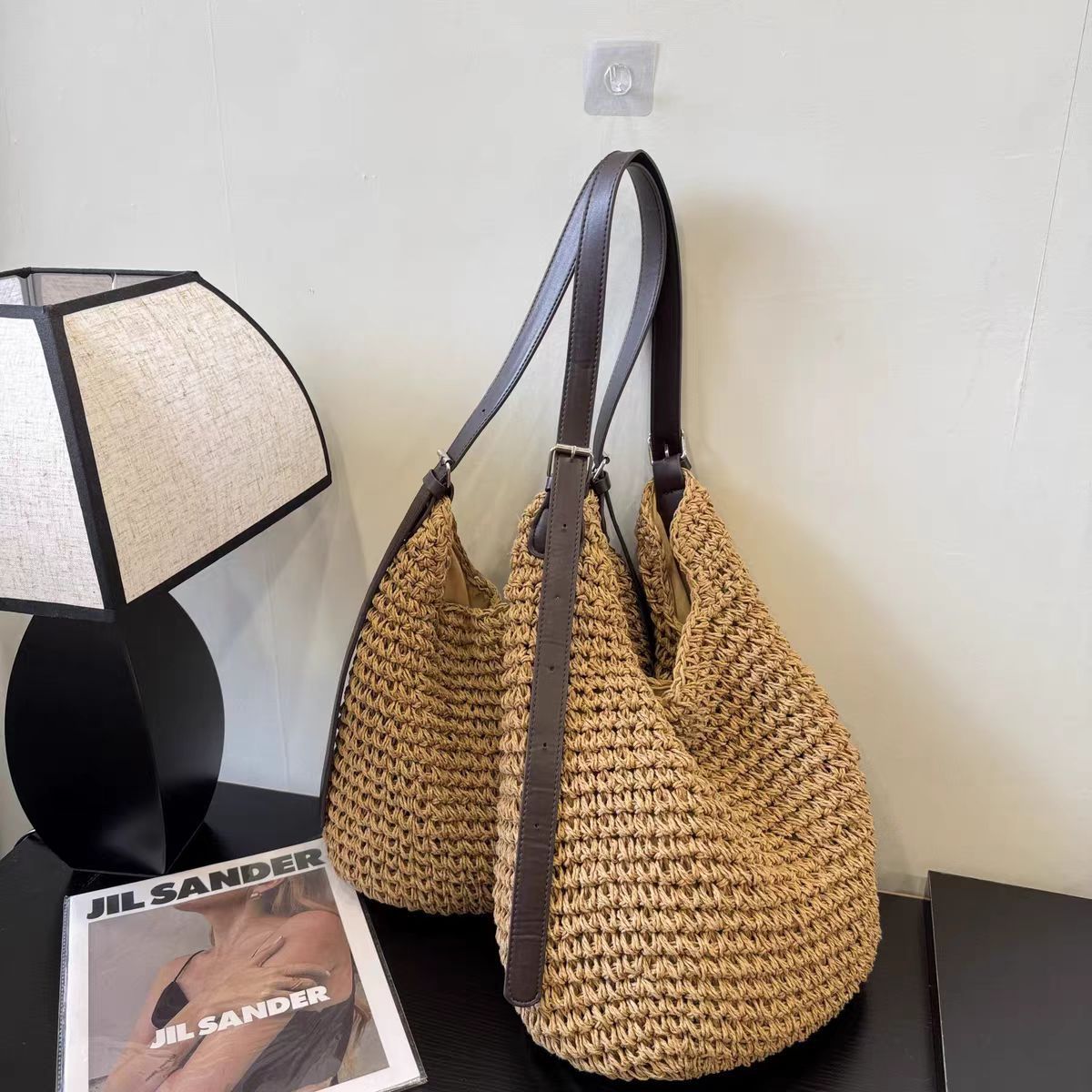 2025 夏の人気のストローバッグ海辺の休暇シングルバッククロスボディレディースバッグ大容量シンプルなファッションレディースバッグ