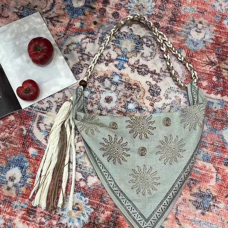 「正しいバージョン」2025 新しいカジュアルボヘミアンスタイルタッセルリネンロープショルダークロスボディバッグレディースバッグ