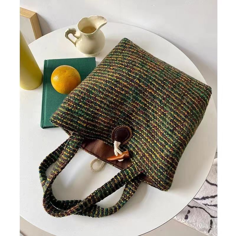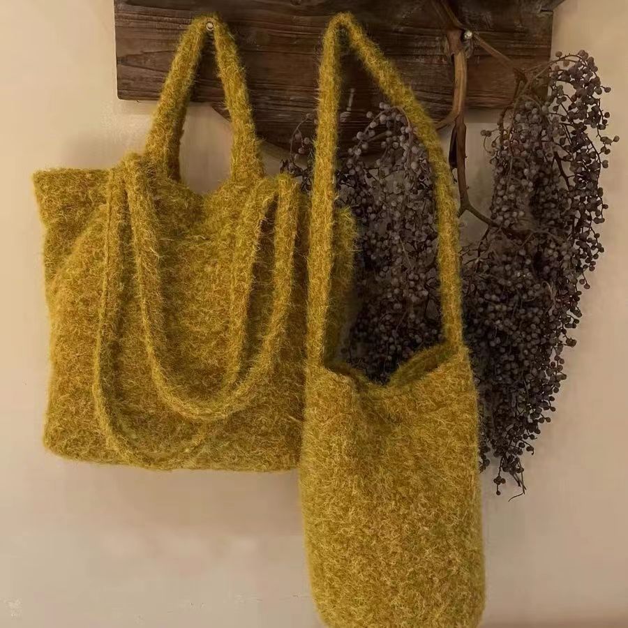 秋冬2023新型毛毛包復古結合授業大容量特包小衆通勤ショルダーバッグ