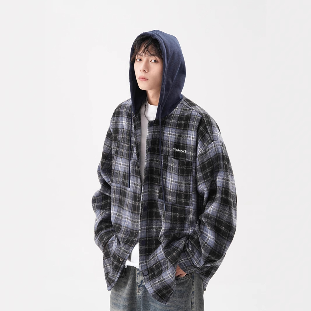 アメリカの偽の2つの格子の帽子のシャツの男女の秋のゆったりしたカジュアルなシャツのコートの怠惰な風のカップルのジャケット