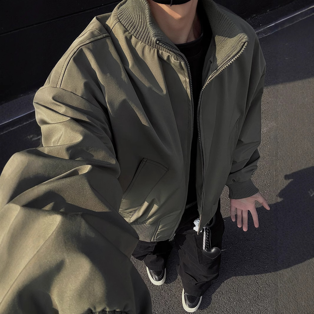 軍の緑の飛行ジャケットの男性の春のcleanfitアメリカの短い野球服のコートのゆったりした立襟の上着