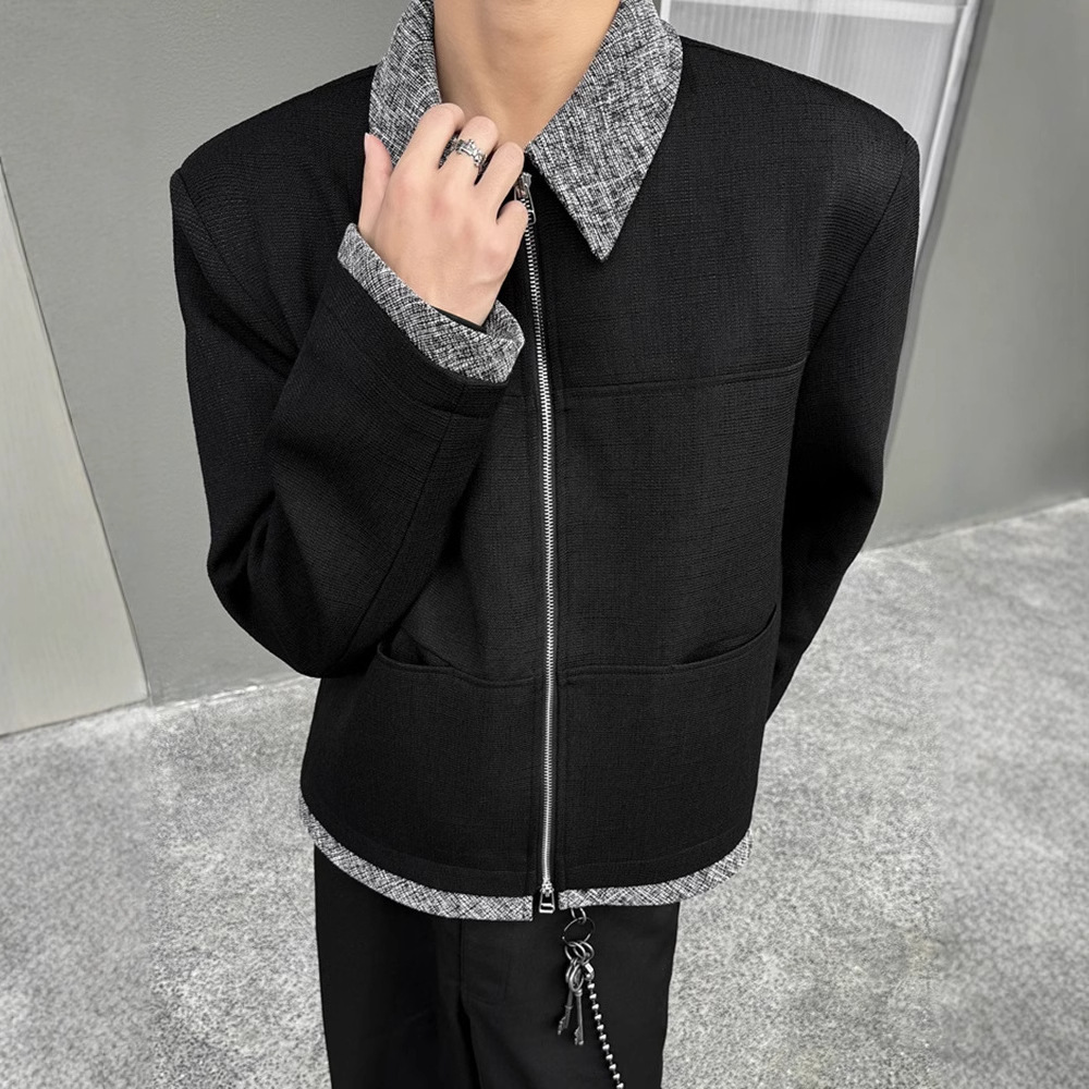 アメリカのレトロな短い肩の小さい香風のジャケットのcleanfitは色にぶつかって襟のオーバーの男性のゆったりした上着をつなぎ合わせます。