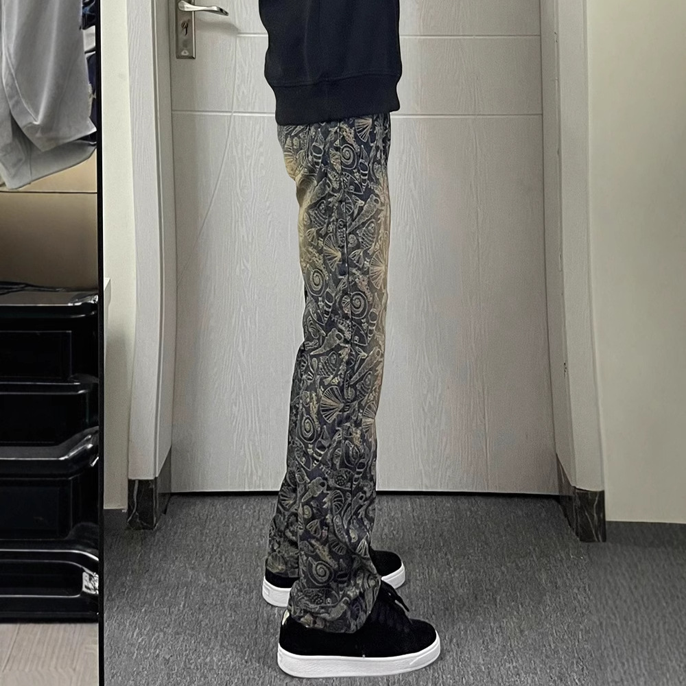 満印ジャカードジーンズ男性モデル春秋潮牌痞帅爆街ズボンアメリカ高街vibe直筒長ズボン