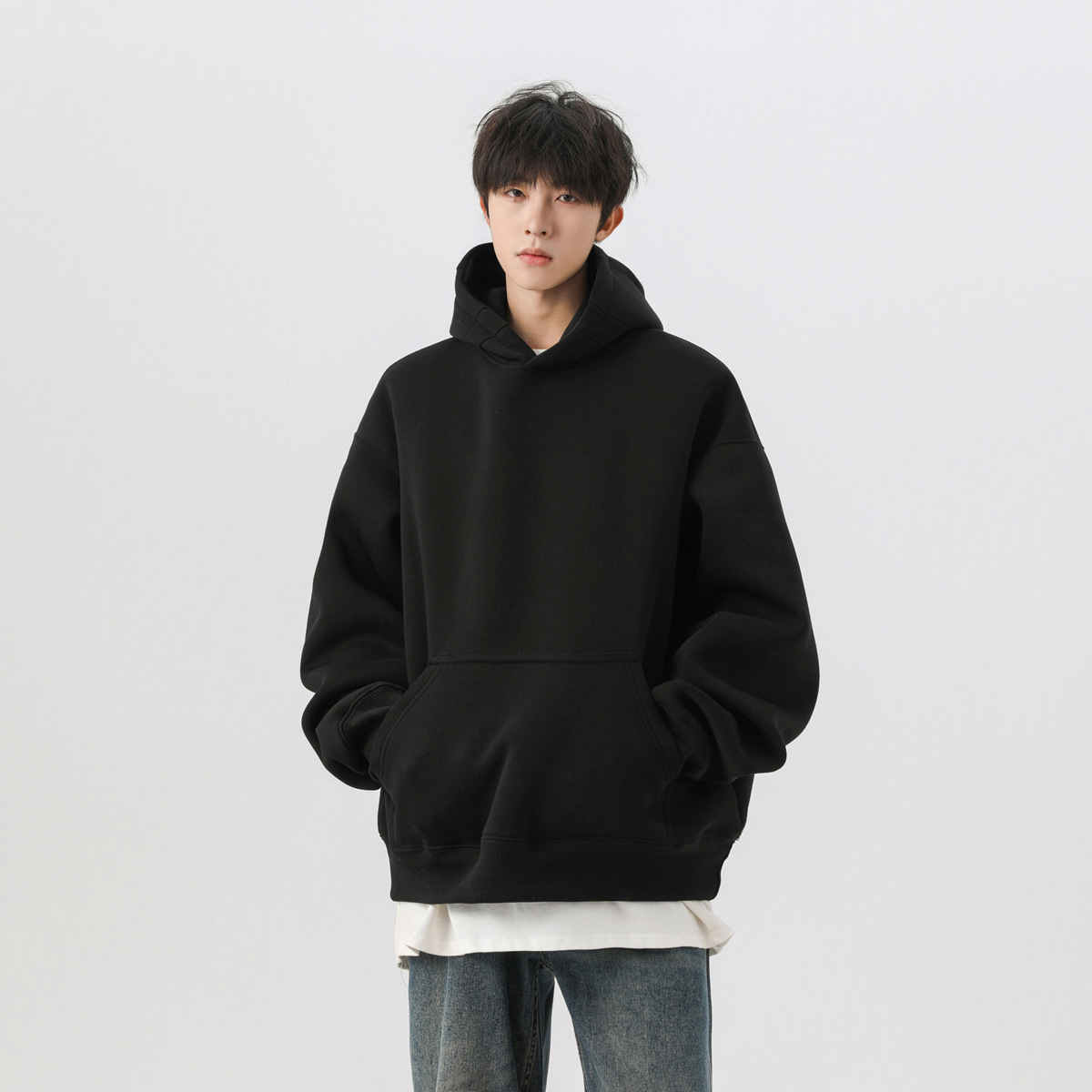 黒の短いboxyガーディアン男連帽春秋cleanfitアメリカの重ポンド硬直コートhoodieフード