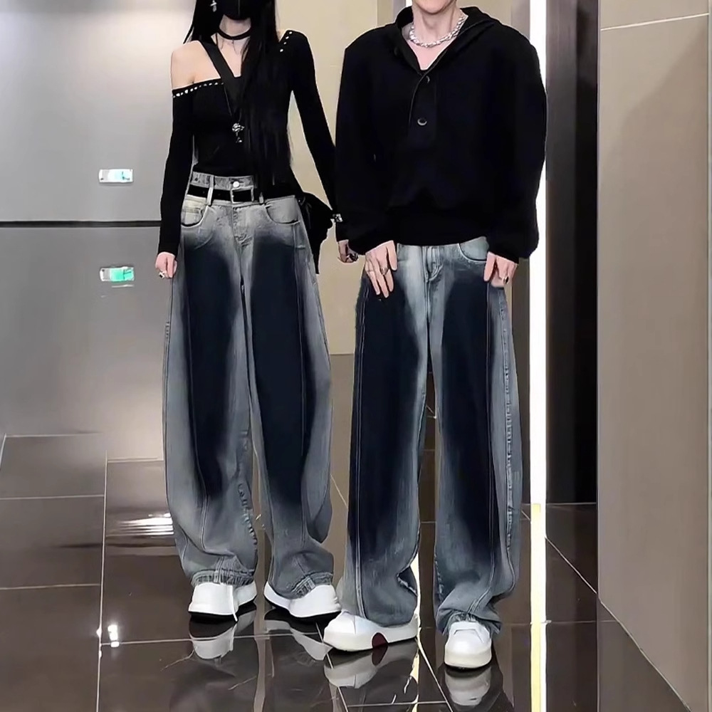 メンズストレートグラデーションジーンズ春夏ルーズカジュアルパンツアメリカントレンドレトロティーンエイジャー男性ズボン