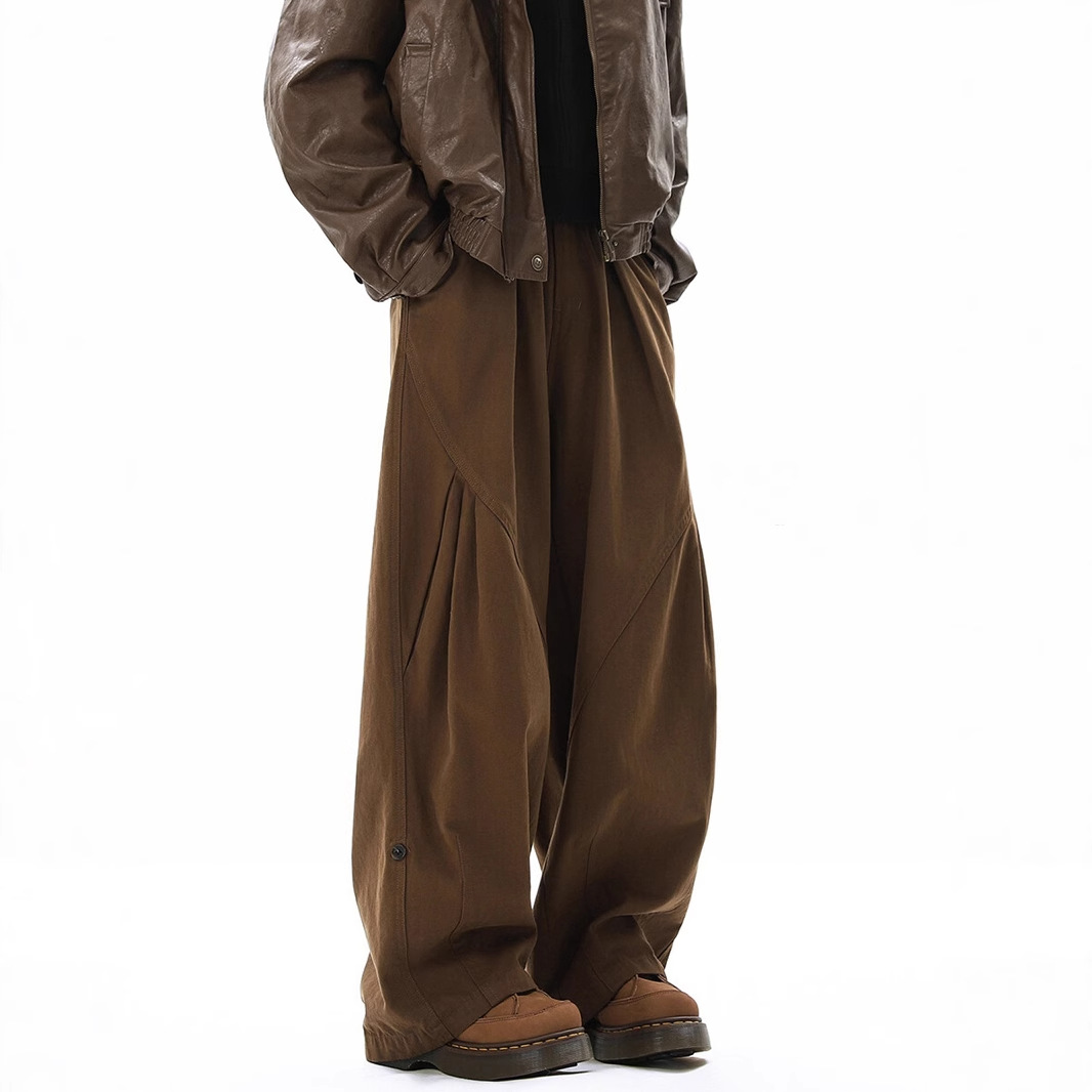 日系レトロカジュアルパンツ男女春潮牌しわデザイン感傘兵ズボン高街痞帅広脚ズボン