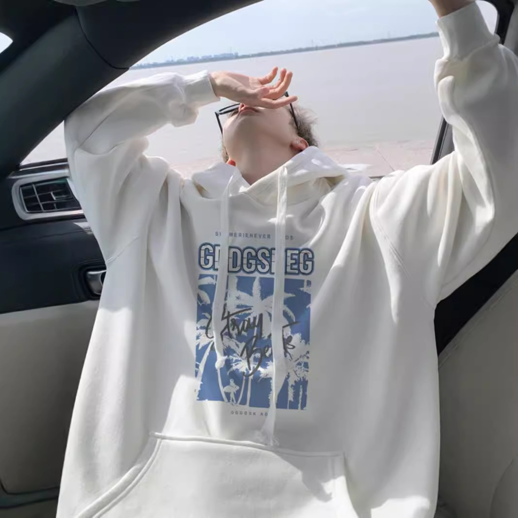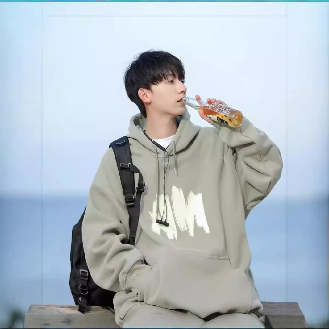 日本系の小清新な衛衣の男性は秋冬2024の新型のほほえみの小さい標準のゆったりしているごろつきのハンサムで簡単な帽子のコートをつないでいます。