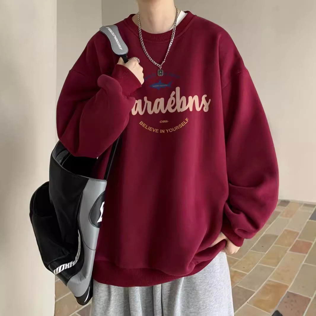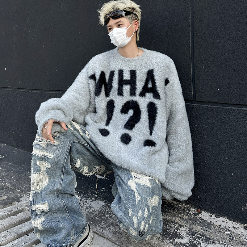 アメリカ式丸首セーター男性秋冬insファッションブランドの大衆デザイン感植毛ゆるいカップルニット