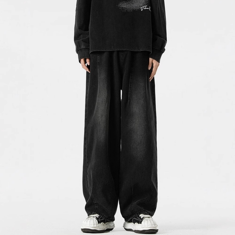 アメリカのレトロな黒いジーパンの男性の春秋のゆったりしたまっすぐな筒の広い足のズボンは街のごろつきのかっこいい高級感のズボンを揚げます。