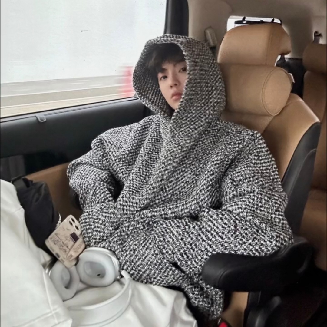 韓国版は膝の毛を超えています。コートの男性は冬に中の長さがあります。