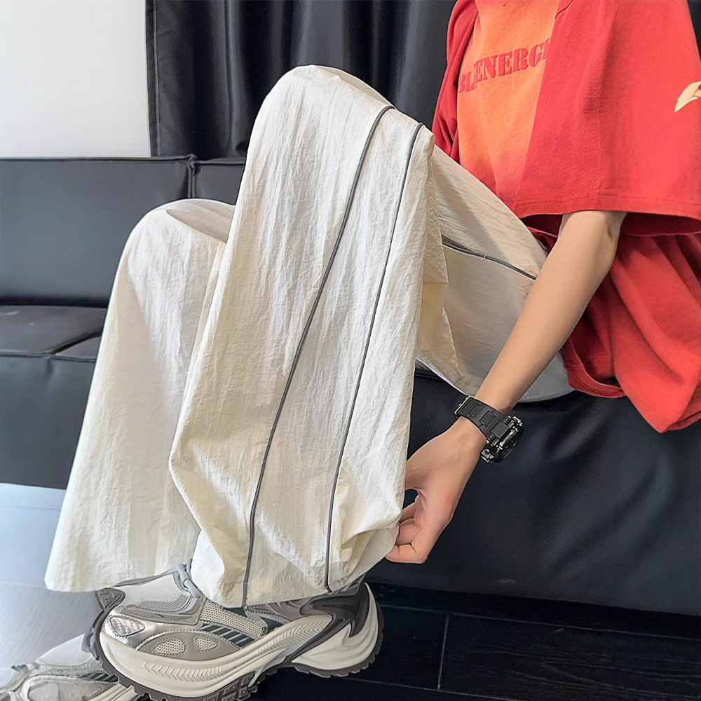白い集明線速乾ズボン男性夏の薄いタイプのファッションブランドのスポーツのワイドパンツのアメリカのストレートのゆったりしたカジュアルパンツ