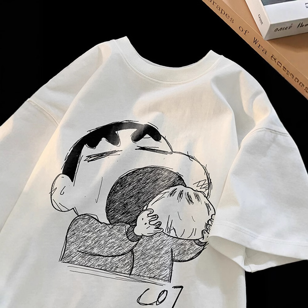クレヨンしんちゃんプリント半袖Tシャツメンズ夏トレンド半袖アメリカンファッションブランドティーンエイジャー学生ルーズトップ