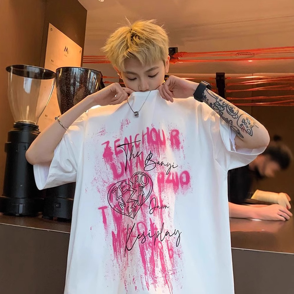純綿プリント半袖tシャツ男性夏oversizeボディシャツ