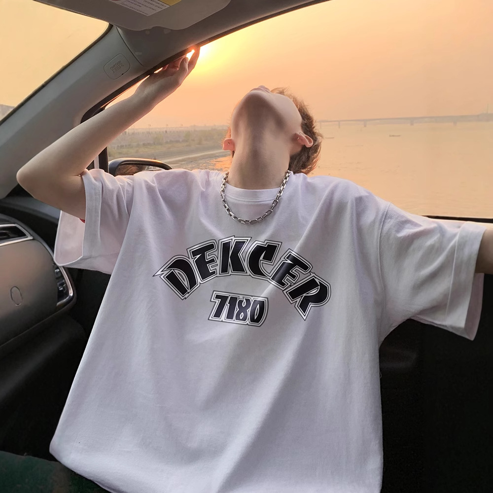 アメリカンレタースローガン半袖Tシャツメンズ夏アメリカントレンディブランドトレンドルーズティーンエイジャーヘビーウェイト半袖服