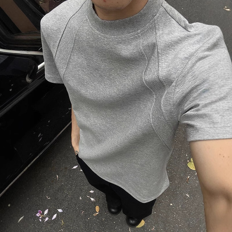 アメリカの肩の半袖の重いポンドの宇宙綿のデザイン感の上着のゆったりした高い街のcleanfitの潮のブランドはtシャツをつなぎ合わせます。