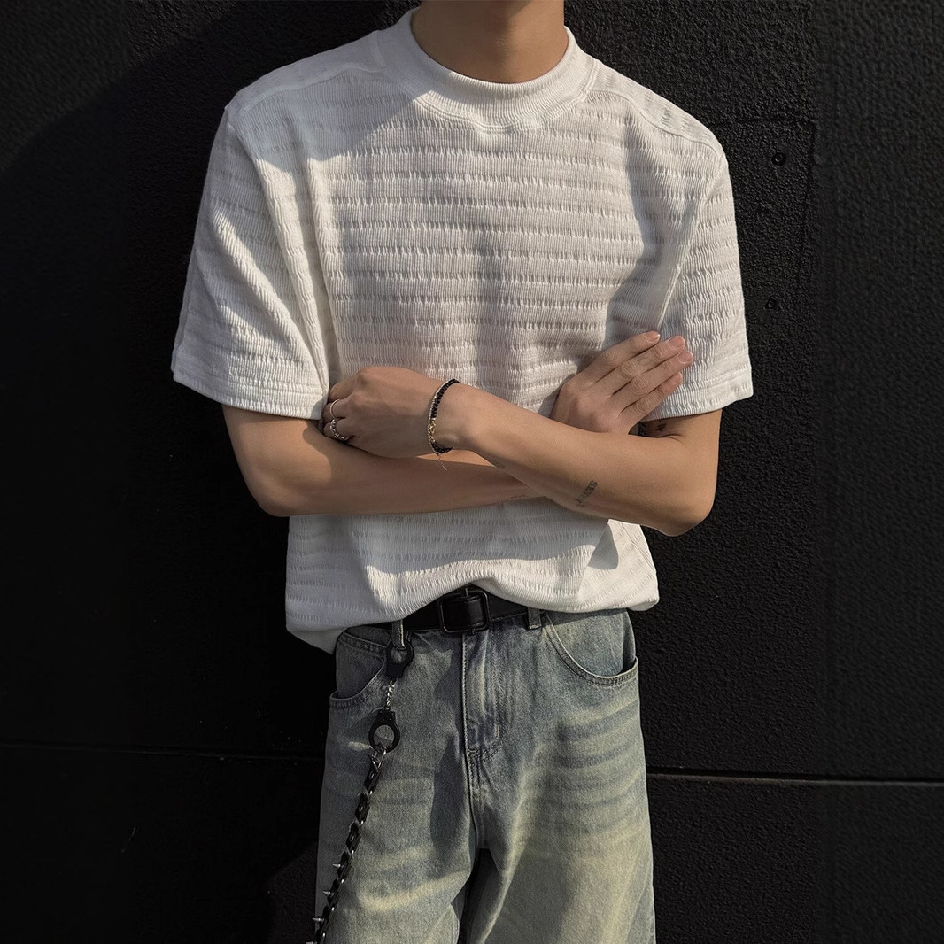 Cleanfit黒ストライプニット半袖男性用夏の弾力性アイスtシャツの襟元にシャツをかける