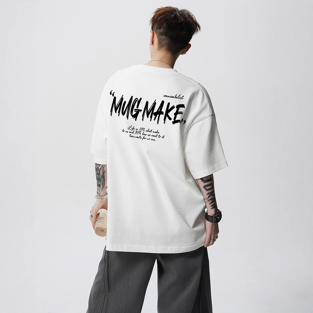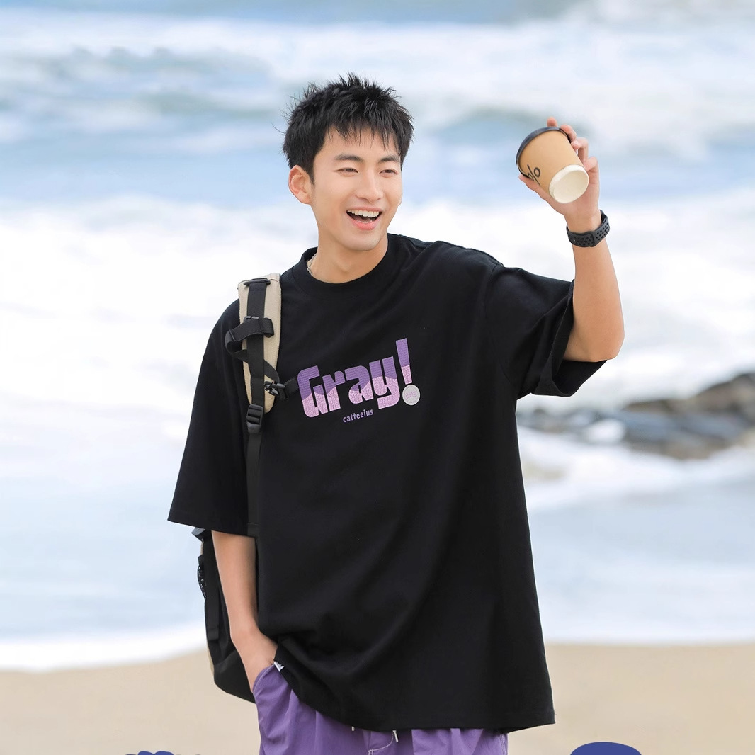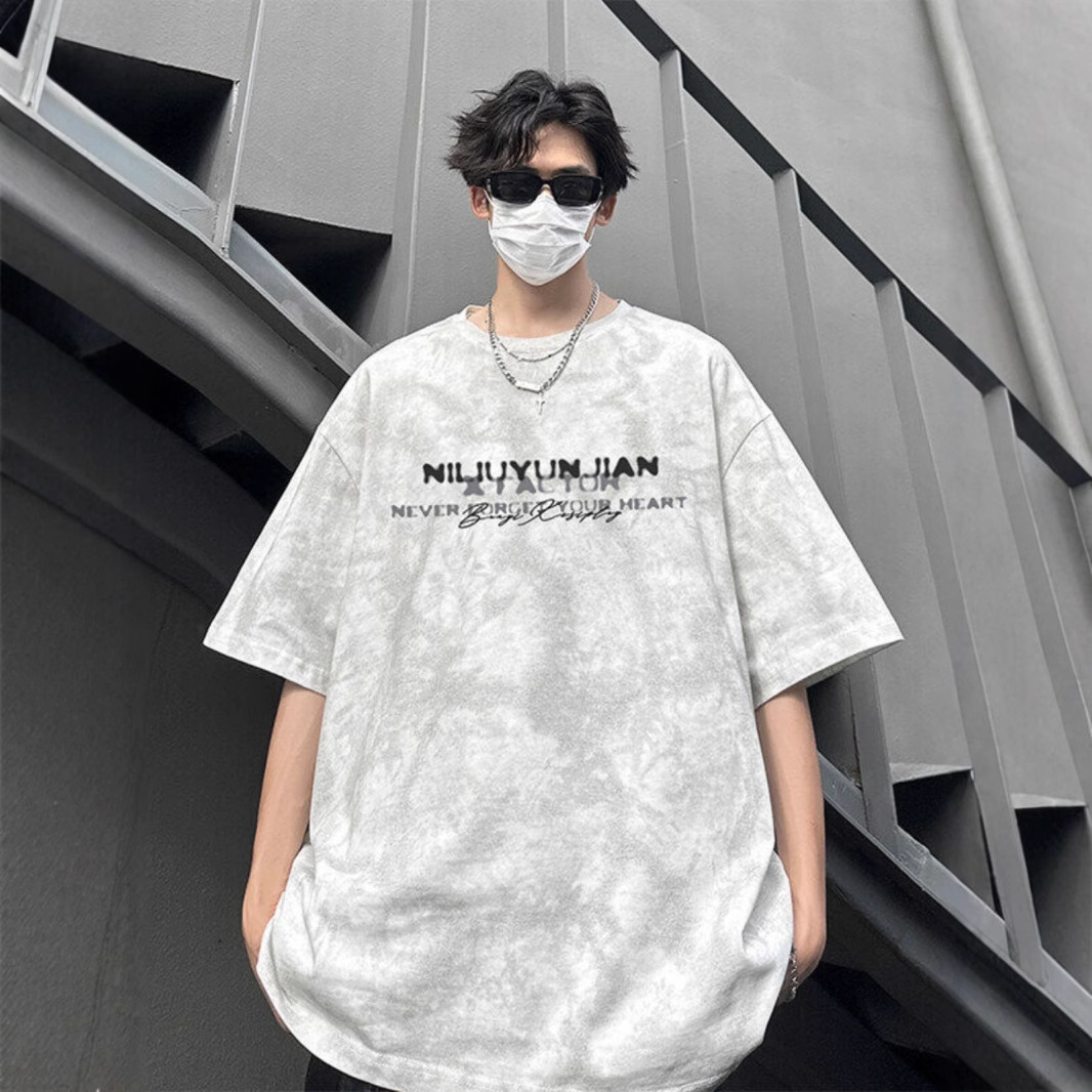 夏用男性用シワ防止・型崩れ防止半袖Tシャツ アメリカのトレンドブランド トレンド ゆったり ティーンエイジャー ヘビーウェイト ラウンドネック 半袖服