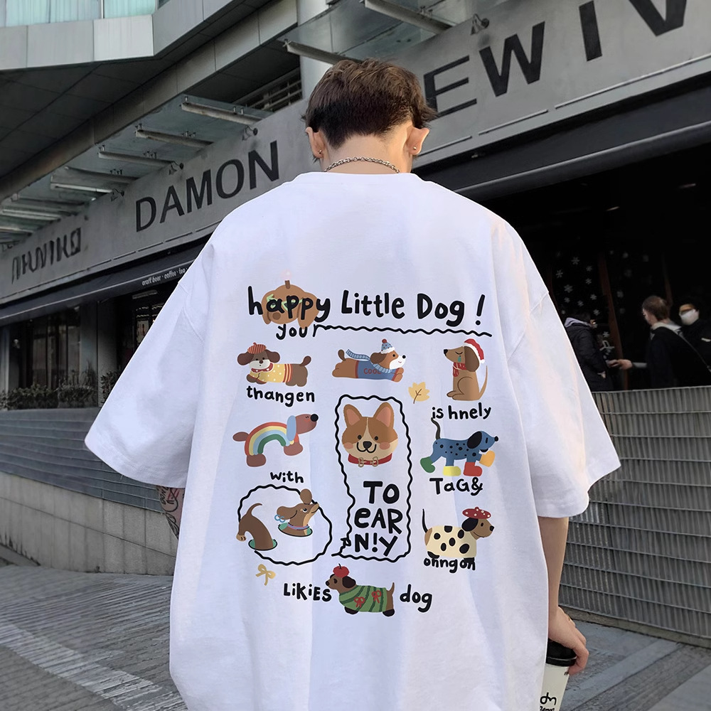 犬プリント半袖 Tシャツメンズ夏 2025 新しいアメリカのトレンディなブランドトレンディなルーズティーン学生服
