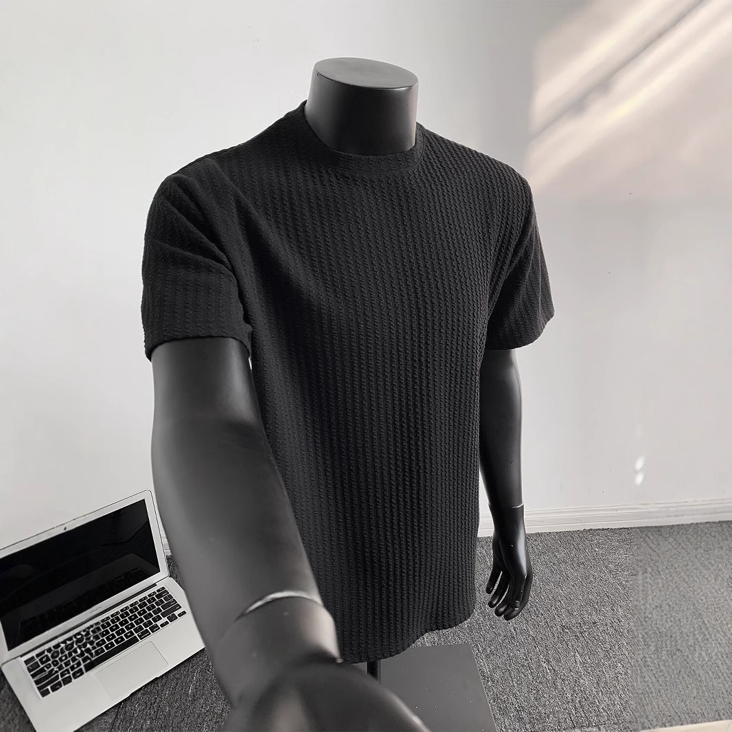 Ins筋理ジャカード丸首半袖tシャツ男女夏に太った大きいサイズのファッションブランドのゆるいカップル半袖上着