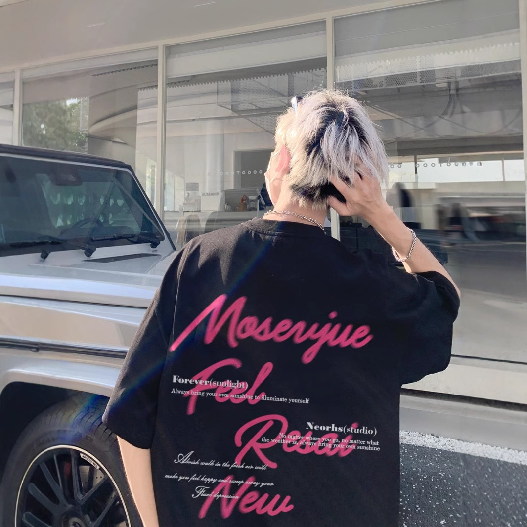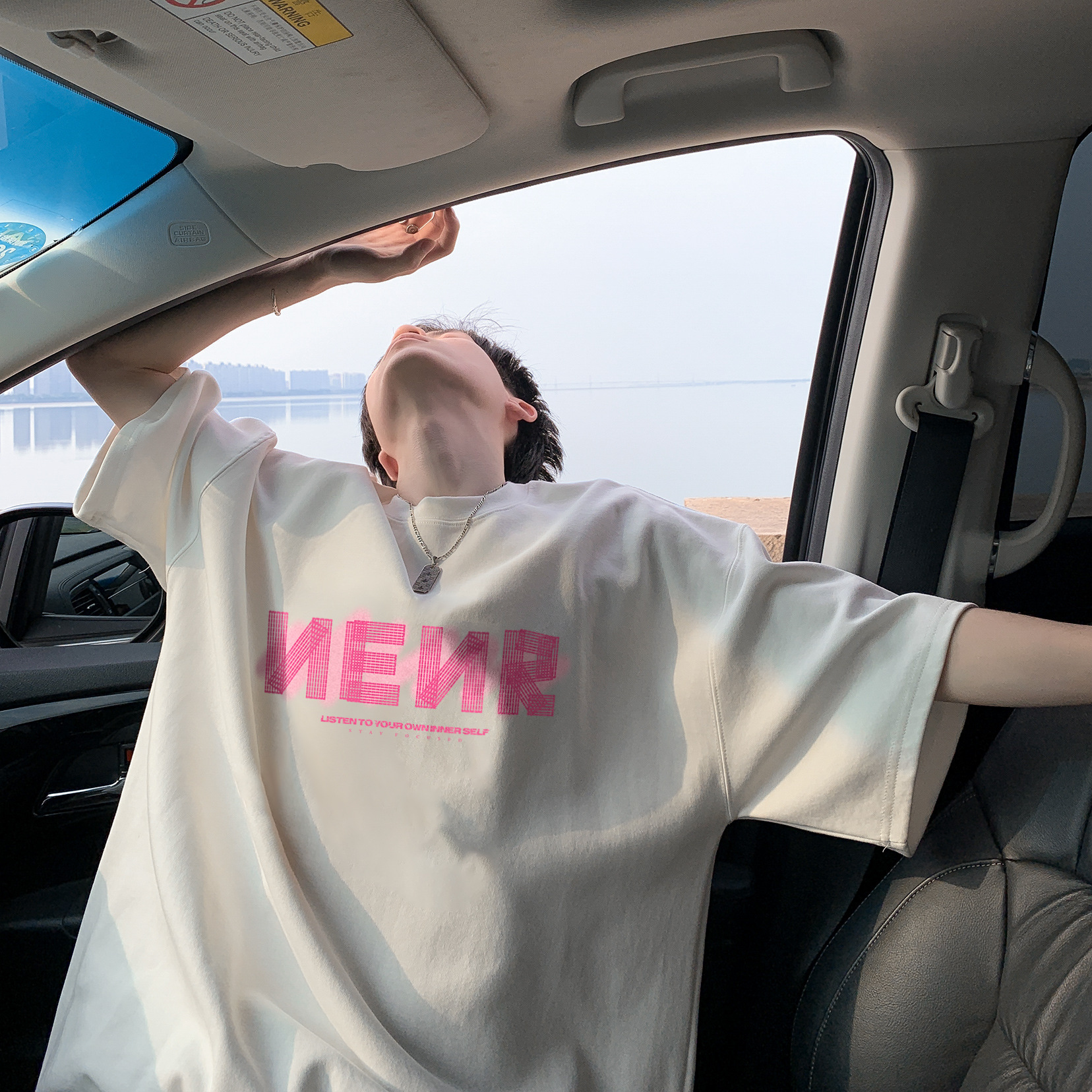 日系ファッション半袖tシャツ男子夏の新型ゆるいcity boyアルファベットのぼんやりしたデザイン感丸襟tシャツ