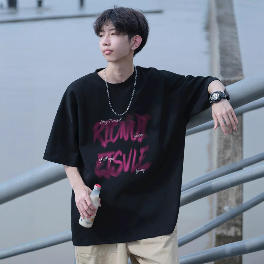 純綿半袖tシャツ男性2025新型春夏青少年アメリカファッションブランドゆるい丸首tシャツtee